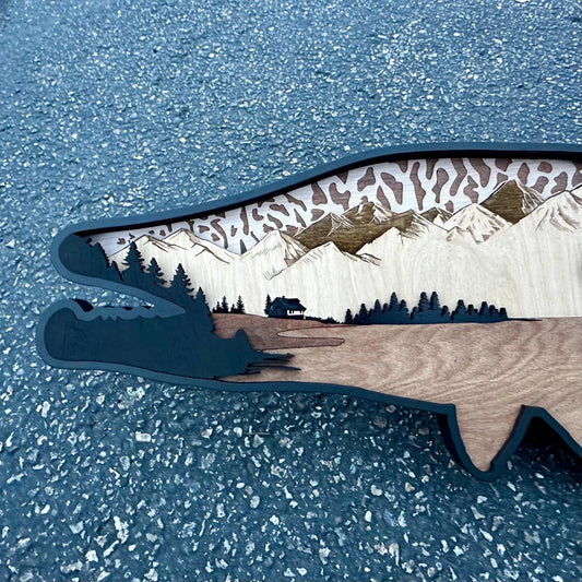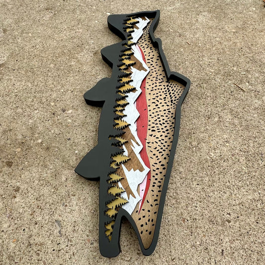 Wood Trout Sunset Mountain Scene