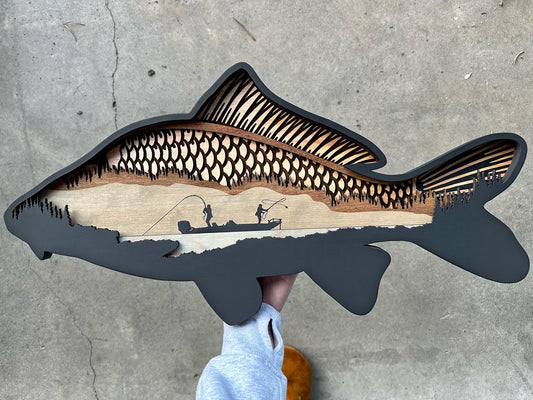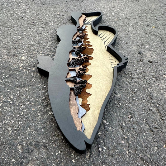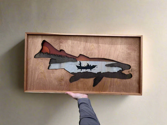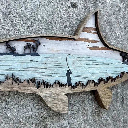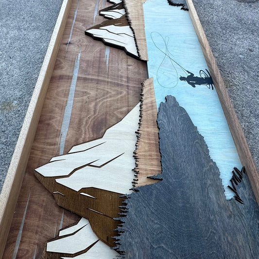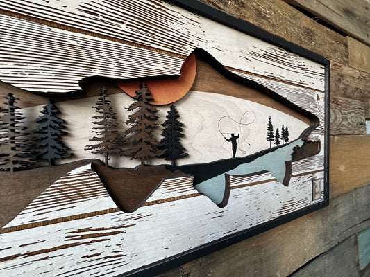 Layered wood Fly Fishing wall décor