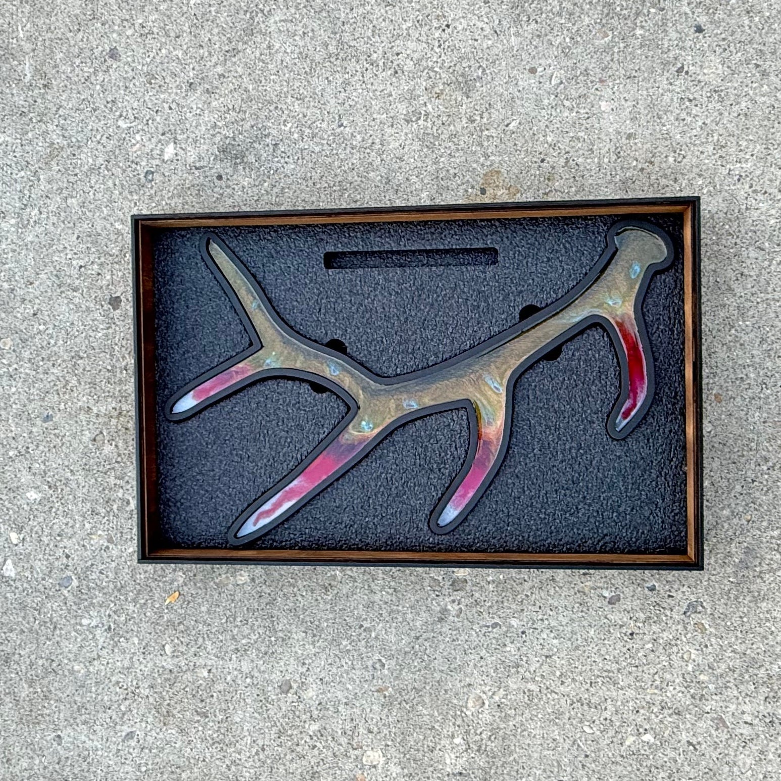 Own a singular work of art with this expertly crafted wood antler piece, finished in premium epoxy resin with sophisticated brook trout colorways—jewel-toned blues, sage greens, and luminous accents that capture the fish's natural elegance. Arrives fully assembled with professional-grade wall mounting hardware for seamless installation. Designed for collectors who appreciate handcrafted authenticity and seek a distinctive statement piece that combines rustic materials with refined artistic execution, creating an unforgettable focal point in any curated space.